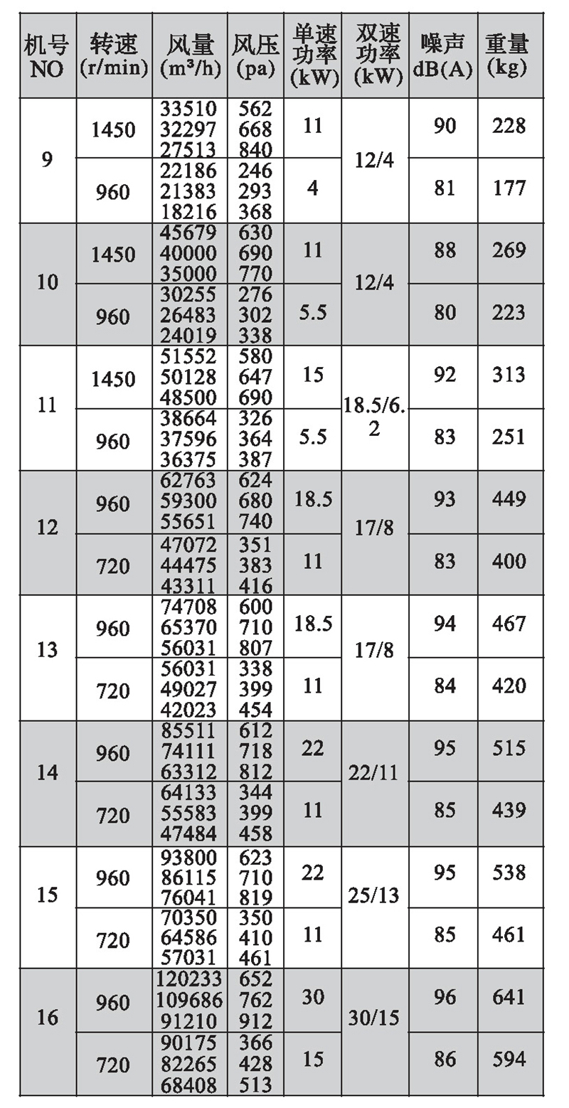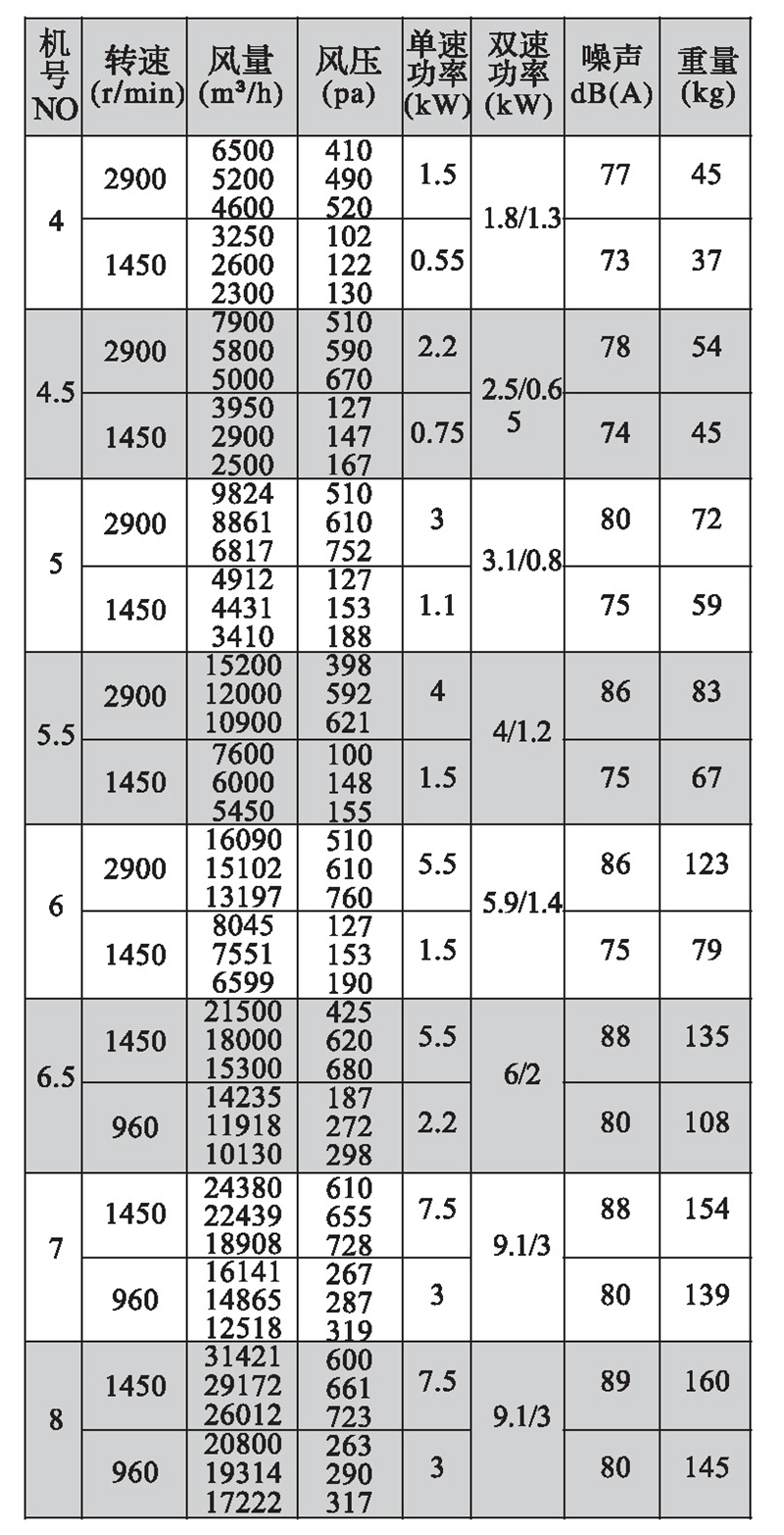注:雙速風(fēng)機(jī)重量參考同號(hào)中高速風(fēng)機(jī)的重量。