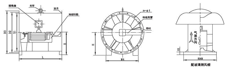 HTF系列風(fēng)機(jī)設(shè)計(jì)獨(dú)特:高溫電機(jī)全封閉內(nèi)置,配設(shè)專門的電機(jī)冷卻系統(tǒng),采用CAD軟件多目標(biāo)優(yōu)化設(shè)計(jì)的軸流和混流葉輪結(jié)構(gòu),通過(guò)多速驅(qū)動(dòng)形式,達(dá)到一機(jī)兩用(即常用送排通風(fēng)和消防使用時(shí)高溫排煙),配設(shè)電控箱后可遠(yuǎn)程自動(dòng)控制。具有耐高溫性能優(yōu)良、效率高、體積小,安裝簡(jiǎn)便(水平、垂直、吊裝均可)等優(yōu)點(diǎn),廣泛應(yīng)用于高層建筑、烘房、地下車庫(kù)、地鐵、隧道等場(chǎng)合消防排煙和送排通風(fēng)。按GA211- 2009《消防排煙風(fēng)機(jī)耐高溫試驗(yàn)方法》測(cè)定,能在280C高溫條件下連續(xù)運(yùn)行40分鐘以上,已被全國(guó)各大城市消防部門認(rèn)可采用。