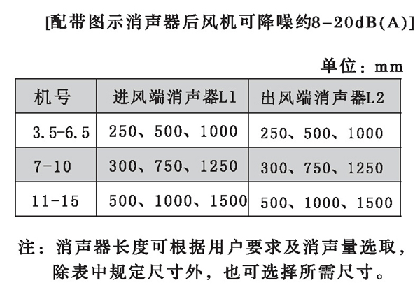 五、HTF型風(fēng)機(jī)配帶消聲器外形尺寸表