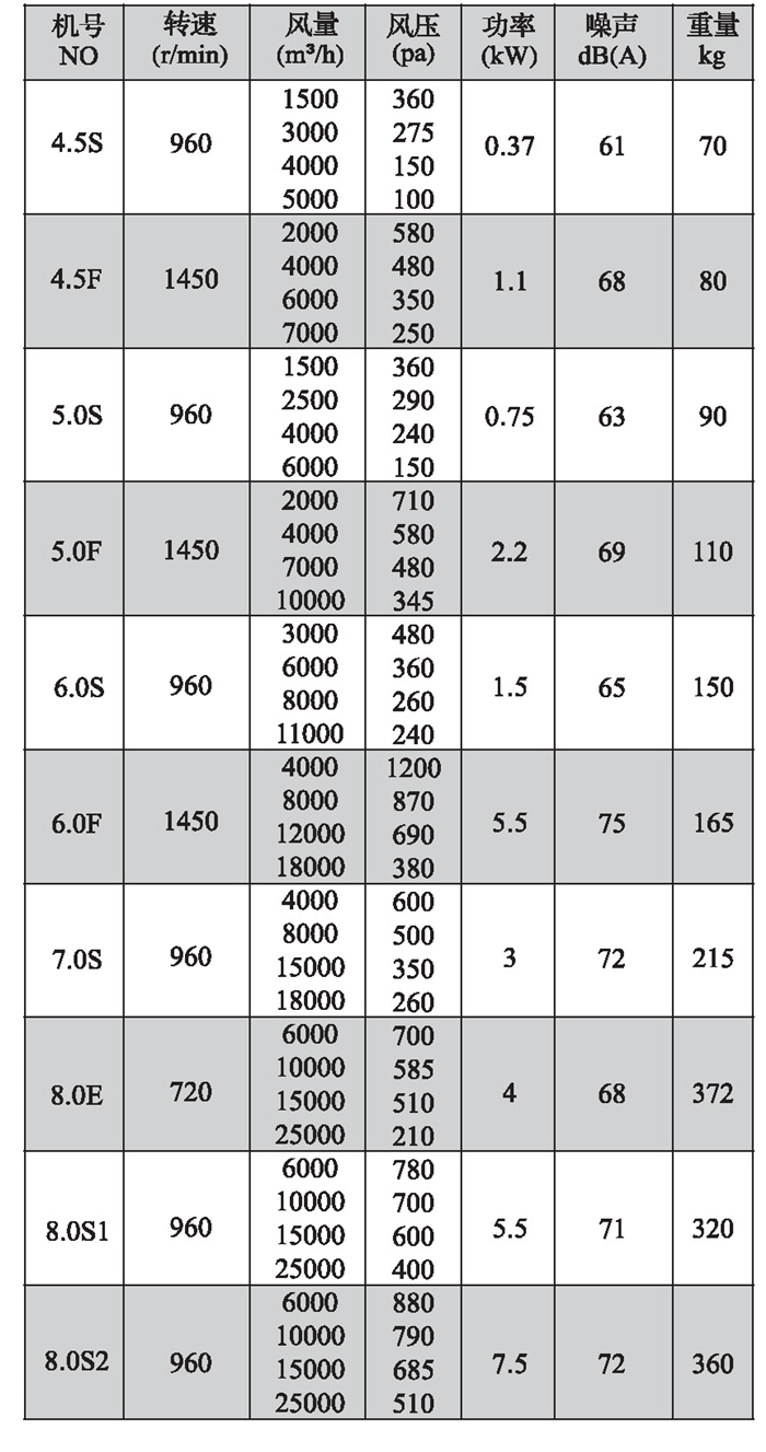 注: 1.GXF型亦可加裝進出口消聲器,加裝方法同XSJG型,一般可消聲6- 10dB(A)。