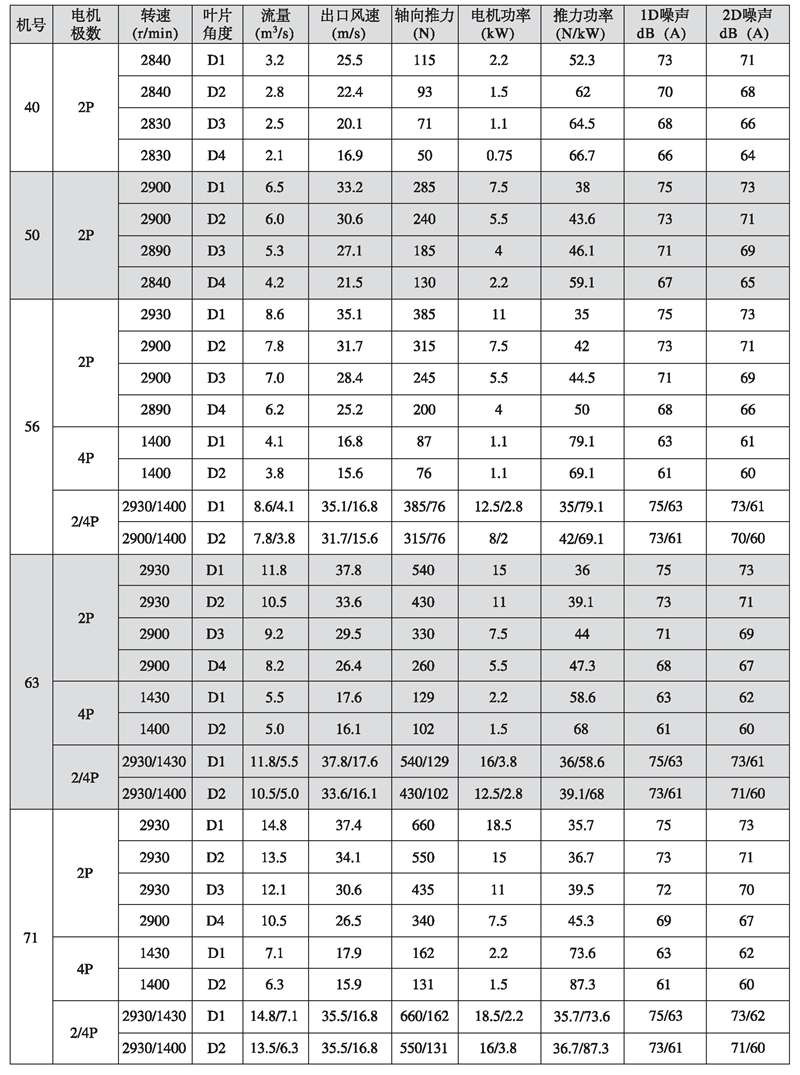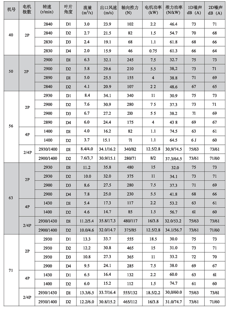 五、K型系列隧道射流風機性能參數表